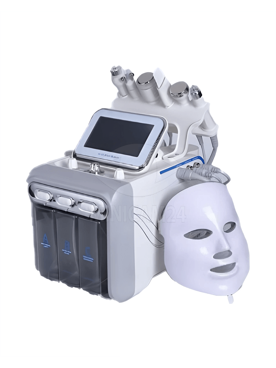 Аппарат гидропилинга VitaLuce 7 в 1 объединяет семь уходовых процедур в одном устройстве. Он оснащён LED-маской, вакуумным гидропилингом, функцией фонофореза, ультразвуковым пилингом, RF-лифтингом, водородным очищением и криотерапией. Такой набор позволяет выполнять как поверхностные, так и более глубокие процедуры ухода за кожей, комбинируя очищение, тонизацию и стимуляцию регенерации.